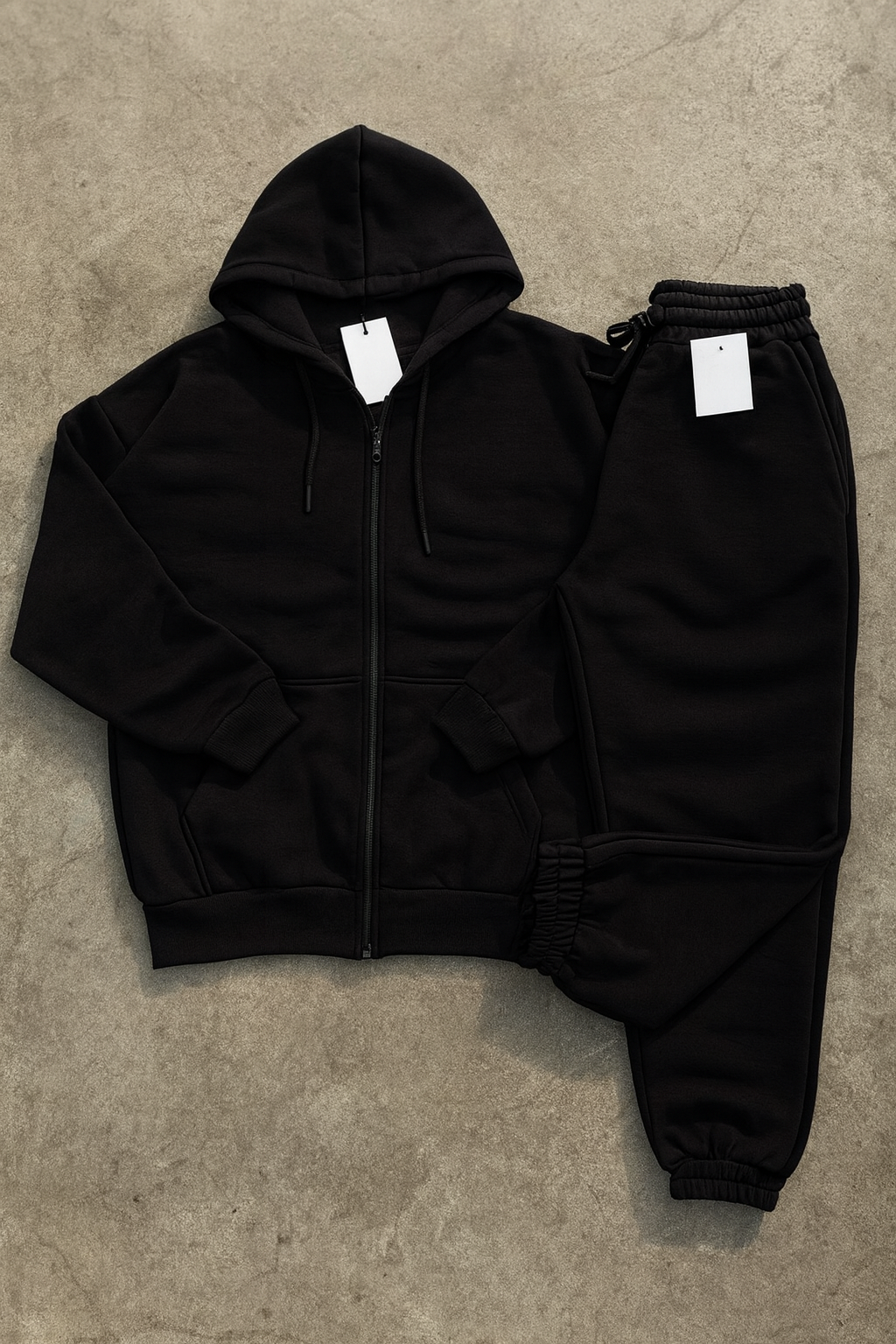 Siyah 3 İplik Fermuarlı Kombin  - g kapüşon takım